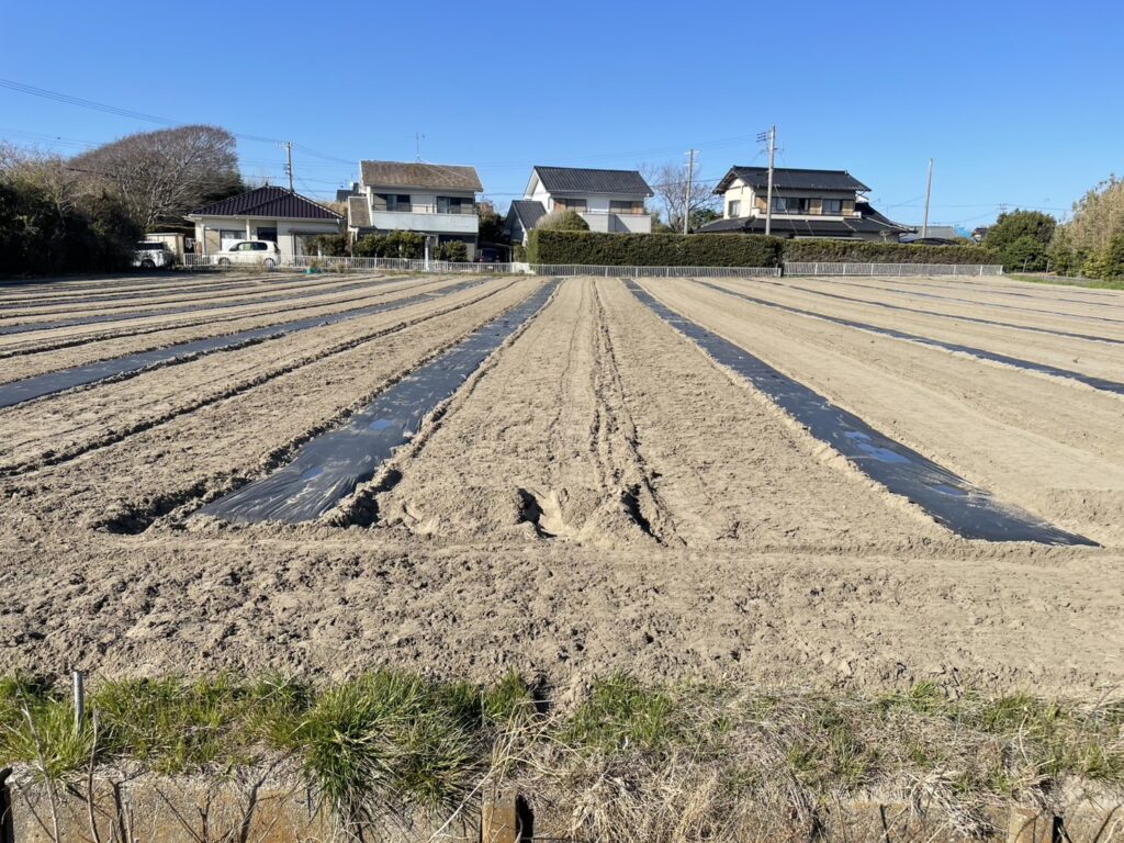 畑では、事前にしっかりと土づくりを行っています。かぼちゃは栄養をよく吸収する作物なので、堆肥を中心にバランスよく土壌を整え、水はけの良い環境をつくることがポイントです。また、つるを大きく伸ばして成長するため、広いスペースを確保しながら植え付けを行います。